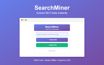 Извлеченные данные могут быть без труда экспортированы в формат CSV, что удобно для использования в электронных таблицах или других SEO-инструментах. Эта функция особенно полезна для проведения аудитов веб-сайтов, документирования структур сайтов или составления данных для отчетов клиентам. SearchMiner полностью работает в браузере, обеспечивая плавный пользовательский опыт без необходимости внешних подключений.